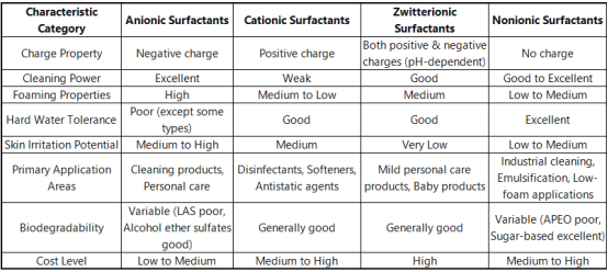 Comparison of Surfactant Types and Selection Guidelines
